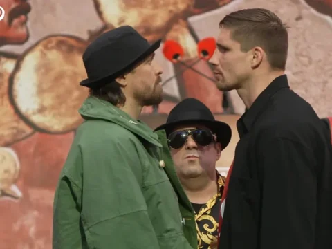 Усик та Верховен провели першу дуель поглядів у Лондоні: боксери зустрілися перед мегафайтом у Єгипті