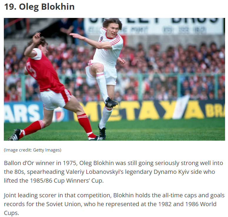 Володар “Золотого м’яча-1975” Олег Блохін посів 19 місце, а Ігор Бєланов – 18 сходинку в списку FourFourTwo.