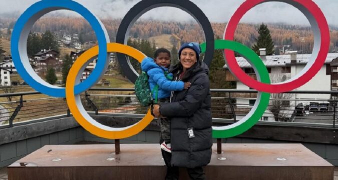 41-year-old Elana Meyers Taylor celebrates with her two sons after claiming her first Olympic Gold medal in her fifth games 🙌 pic.twitter.com/1PxqaIQPjQ