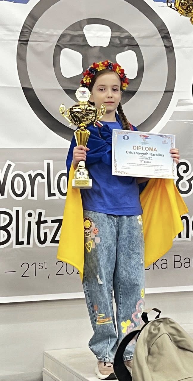 А вже 19–20 квітня Кароліна здобула ще одне срібло — цього разу в особистому заліку на Чемпіонаті світу з бліцу серед дівчат до 8 років (FIDE World Cadet & Youth Chess Championships 2026 — Blitz G08).